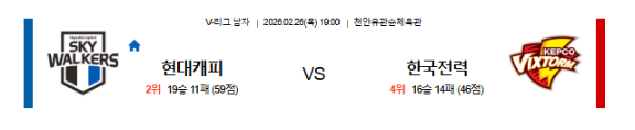V리그 남자배구 현대캐피탈 한국전력 배구분석 2월26일경기 승부예측 배구픽