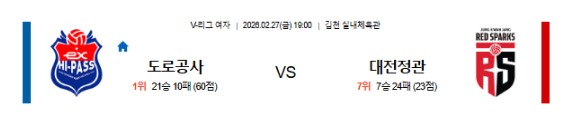 V-리그 한국도로공사하이패스 정관장클래식 여자부배구 배구분석 2월27일경기 승부예측 V리그오버