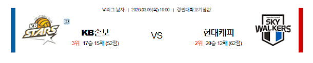 | 승/패 | 현대캐피탈 승 | ⭐⭐⭐⭐ | [추천] KB손해보험 상대 3연승의 압도적 상성 및 레오의 컨디션 회복 |