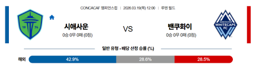 데일리스포츠, Daily Sports, 북중미 챔피언스컵 분석, 3월 19일 축구 결과 예측, 시애틀 사운더스 밴쿠버 화이트캡스, 폴 아리올라 멀티골, 조던 모리스 침투, 알베르트 루스낙 패스, 브라이언 화이트 득점, 세바스찬 베르할터 조율, CONCACAF Champions Cup Round of 16, 카스카디아 더비 분석, ONE 스포캔 스타디움, 브라이언 슈메처 전술, 실시간 축구 스코어 확인