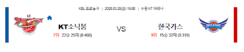 | 승/패 | 수원 KT 승리 | ⭐⭐⭐⭐⭐ | [강추] 조나단 윌리엄스 합류 및 가스공사의 원정 9연패 반영 |