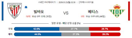 | 승/무/패 | 아틀레틱 빌바오 승 | ⭐⭐⭐⭐ | [강추] 하프스페이스 침투 우위 및 베티스의 수비 간격 불안 |