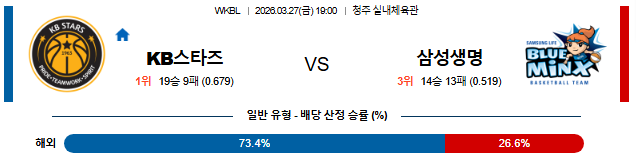 | WKBL | KB스타즈 vs 삼성생명 | KB 승 | 승 ⭐⭐⭐⭐ / 언더 | 박지수의 압도적 높이 |