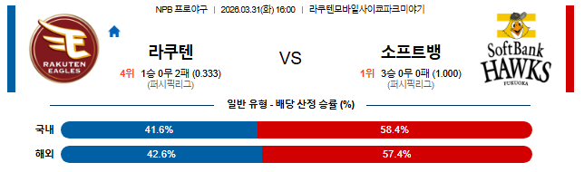 #데일리스포츠 #NPB분석 #3월31일일야 #라쿠텐골든이글스 #소프트뱅크호크스 #마에다겐타 #오제키토모히사 #콘도켄스케 #야마카와호타카 #일야분석 #프로토픽