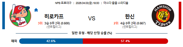 ⚾ [NPB 분석] 4/3 18:00 히로시마 vs 한신: '빈타' 히로시마 vs '화력 우세' 한신 [데일리 스포츠]