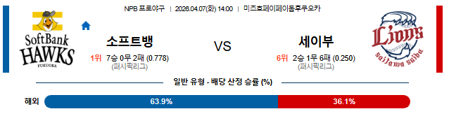 ⚾ [4/7 14:00 NPB 분석] 소프트뱅크 vs 세이부: '호크스의 비상' vs '사자의 침묵'